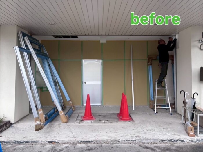 施設のエントランスにカバー工法で自動ドアを取り付けました。